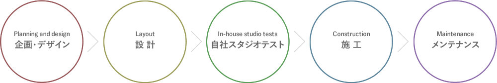 Our proprietary new techniques are implemented after repeating many demonstration experiments in our studio. With a consistent, responsible system from the construction considerate of the local environment to maintenance, we have established a total coordination process for completing projects with high precision.