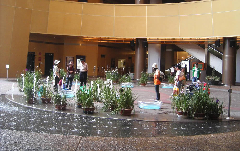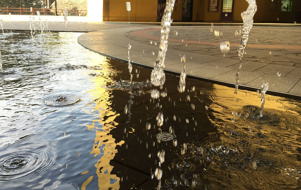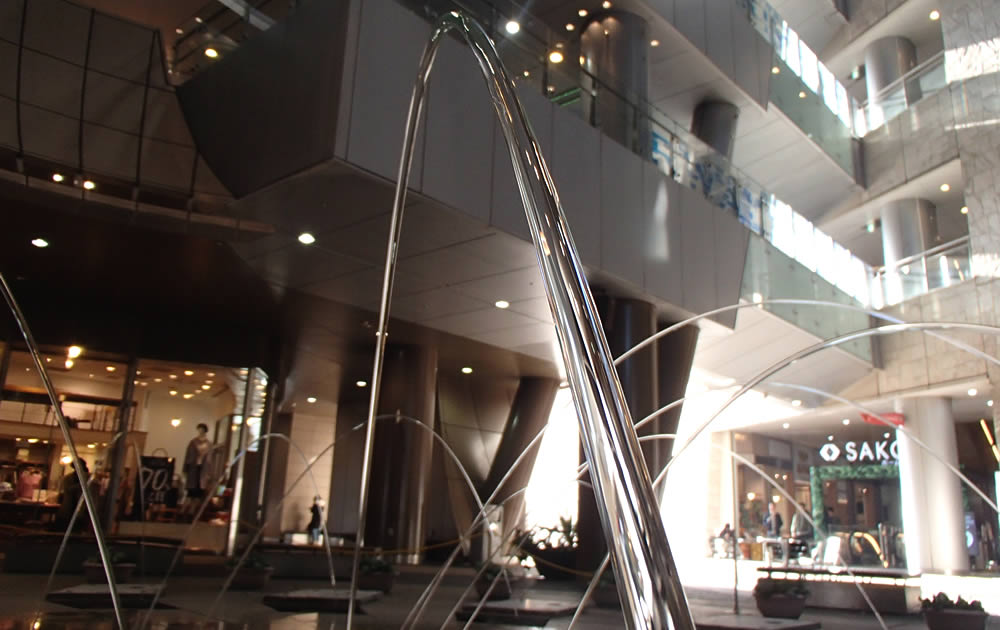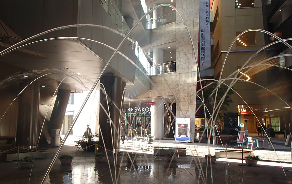 現代建築を潤す噴水による癒しのシアター A soothing theater of water which provides moisture to the modern architecture