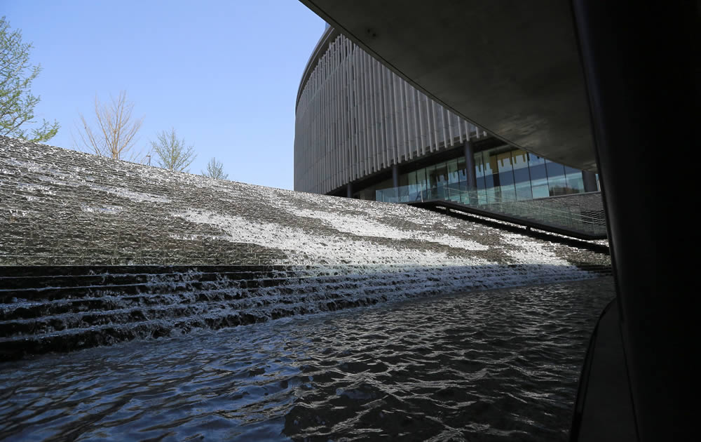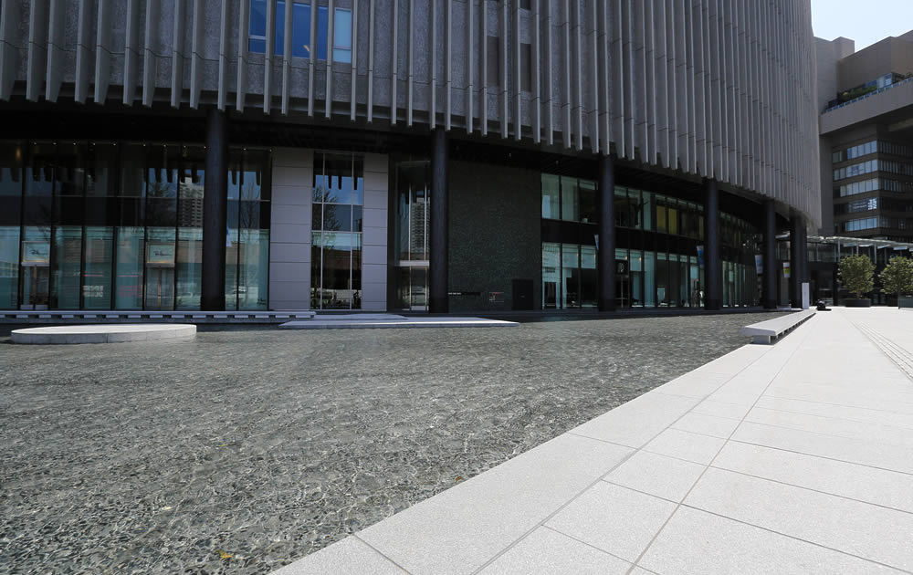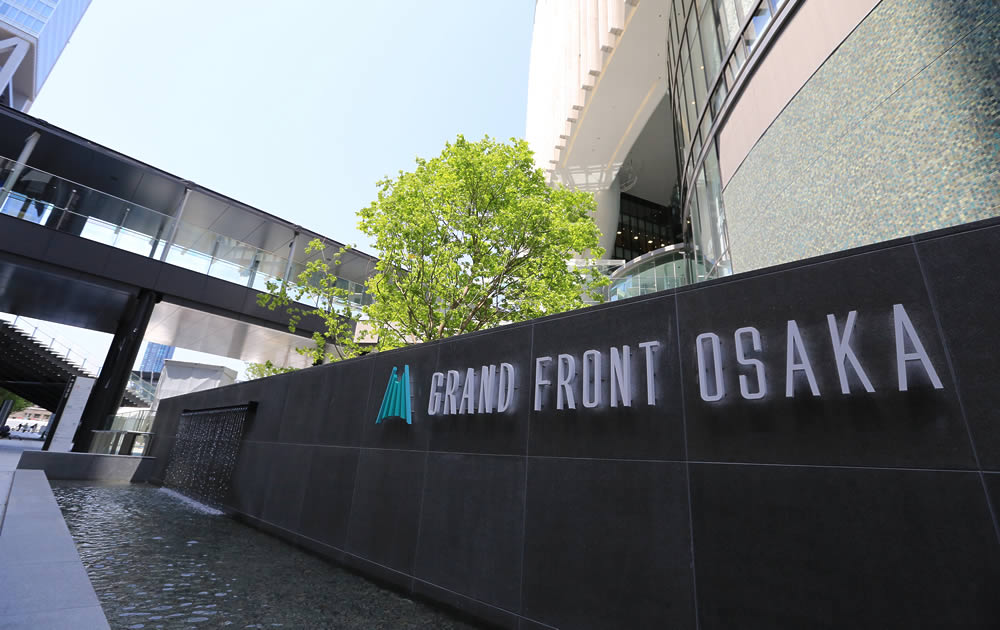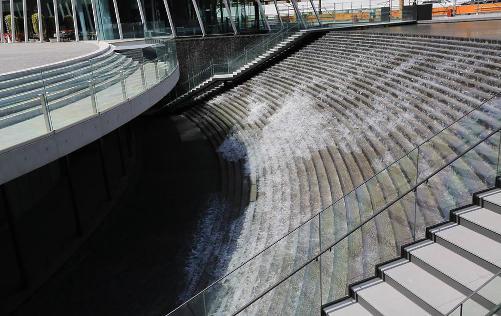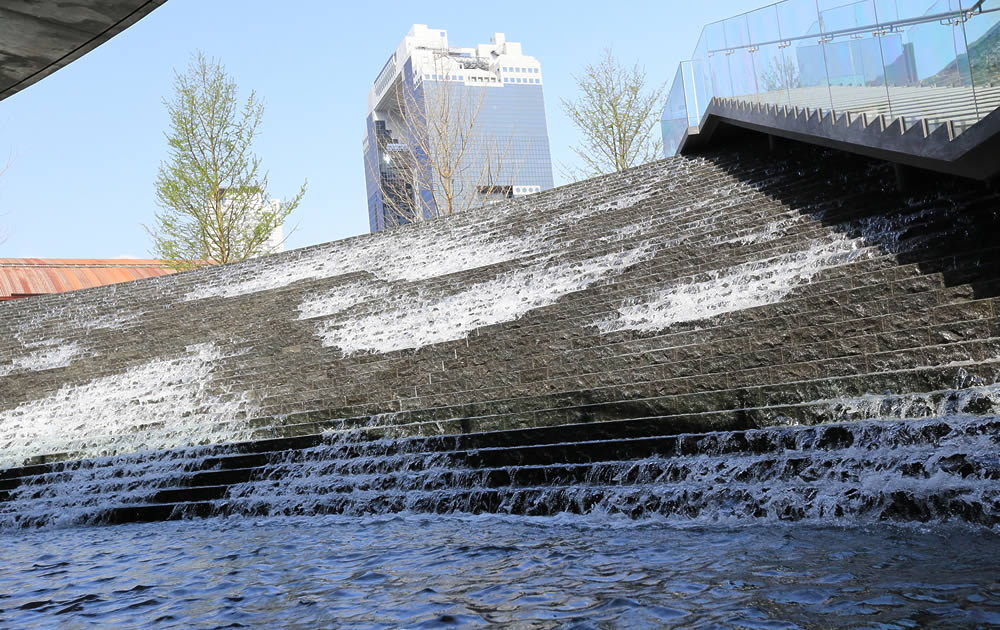 大阪の中心地を美しく彩る大滝と水辺 The large waterfall and waterfront which beautifully adorns the heart of Osaka