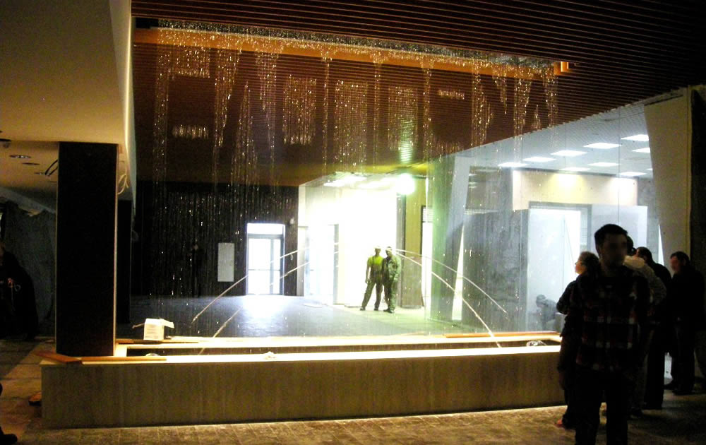 水のカーテンにメッセージが浮かぶアートな作品 A work of art which displays messages on the water curtains