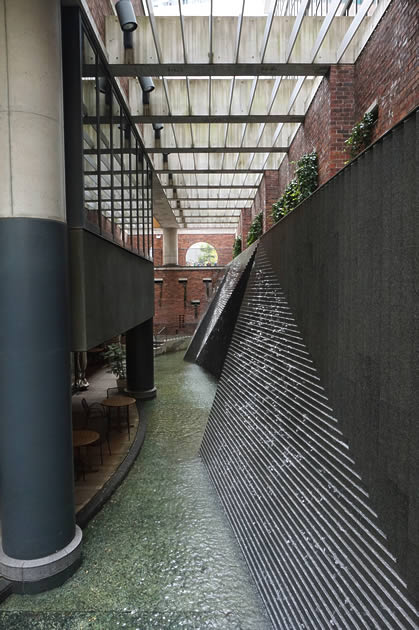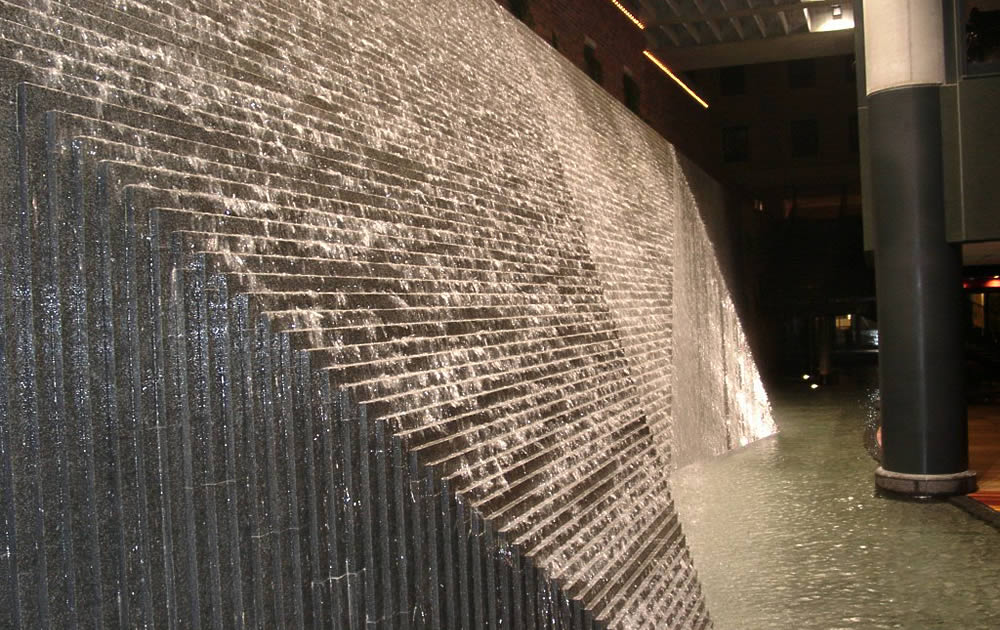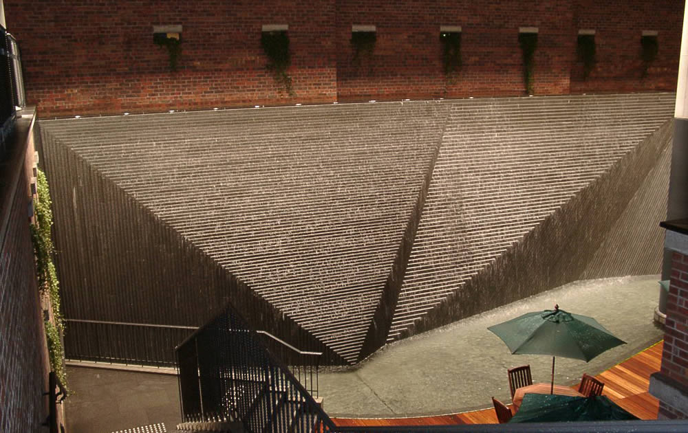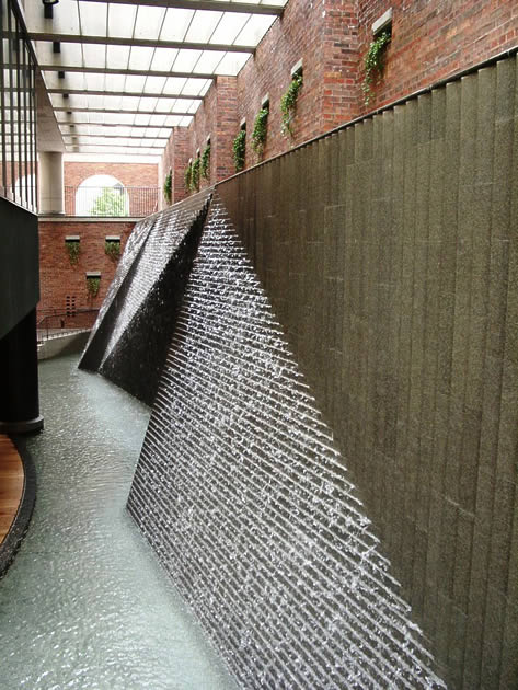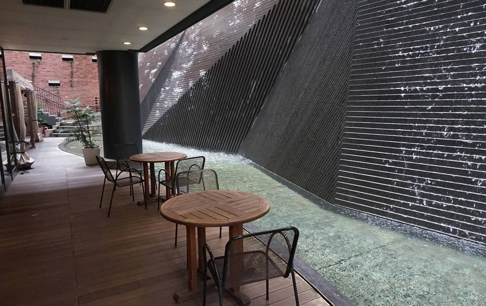 The waterfall feature makes for a charming rest area