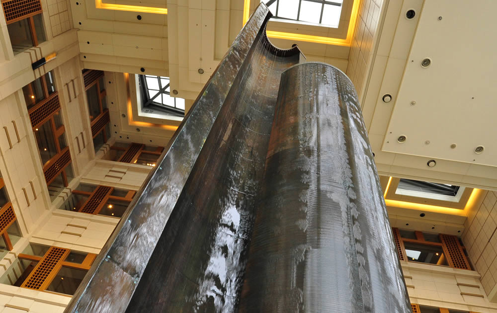 心地よく滝面を伝え落ちる水のアート