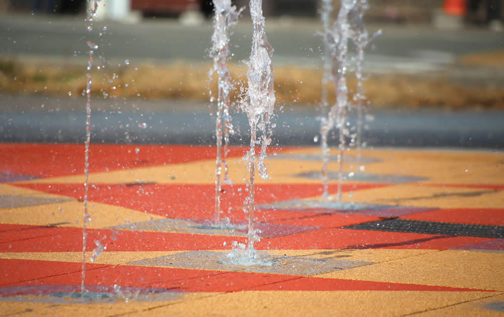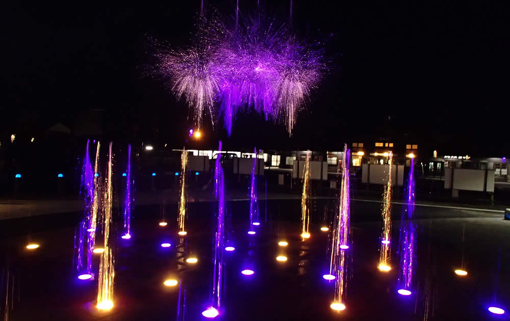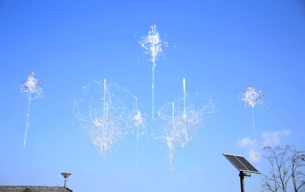天高く描かれる表情豊かな噴水のアート