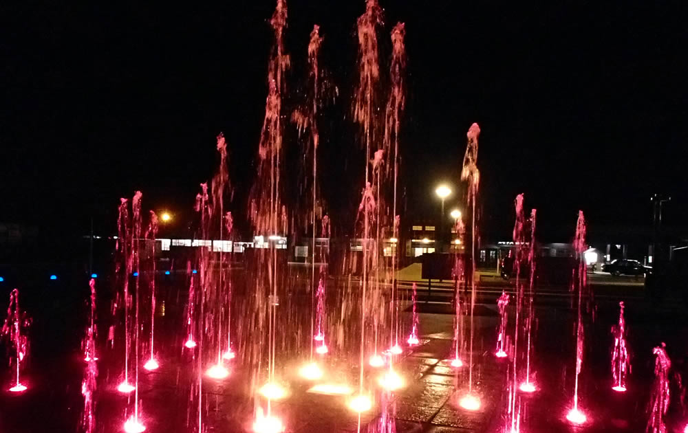 Expressive water fountain art, shooting high into the sky