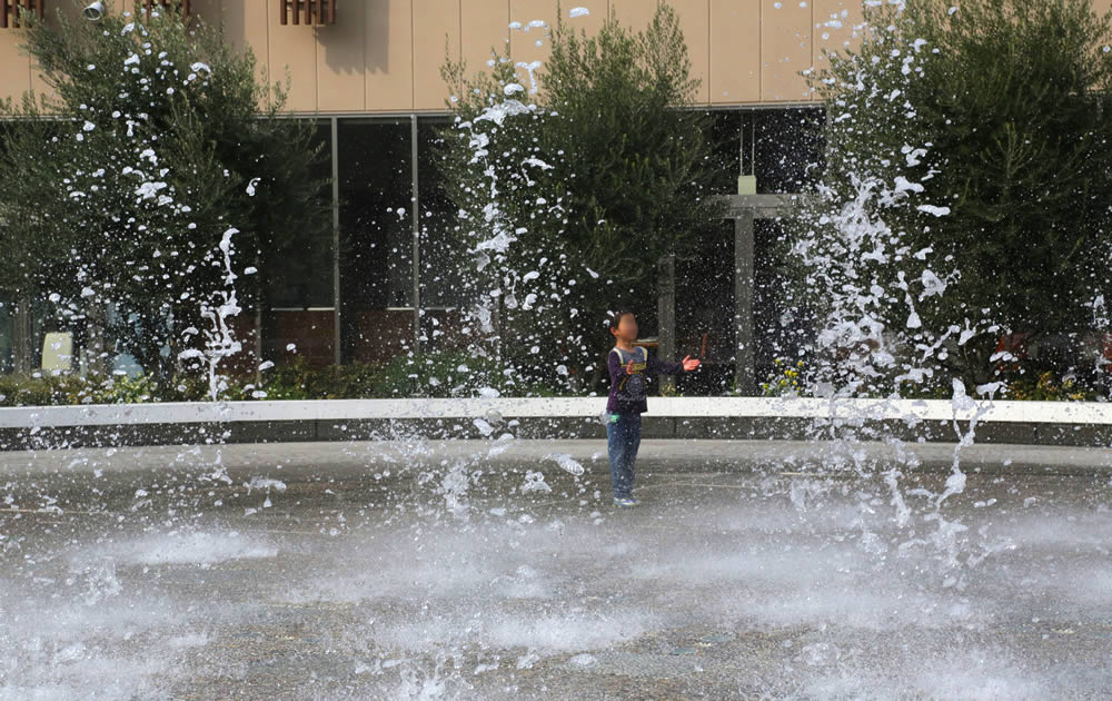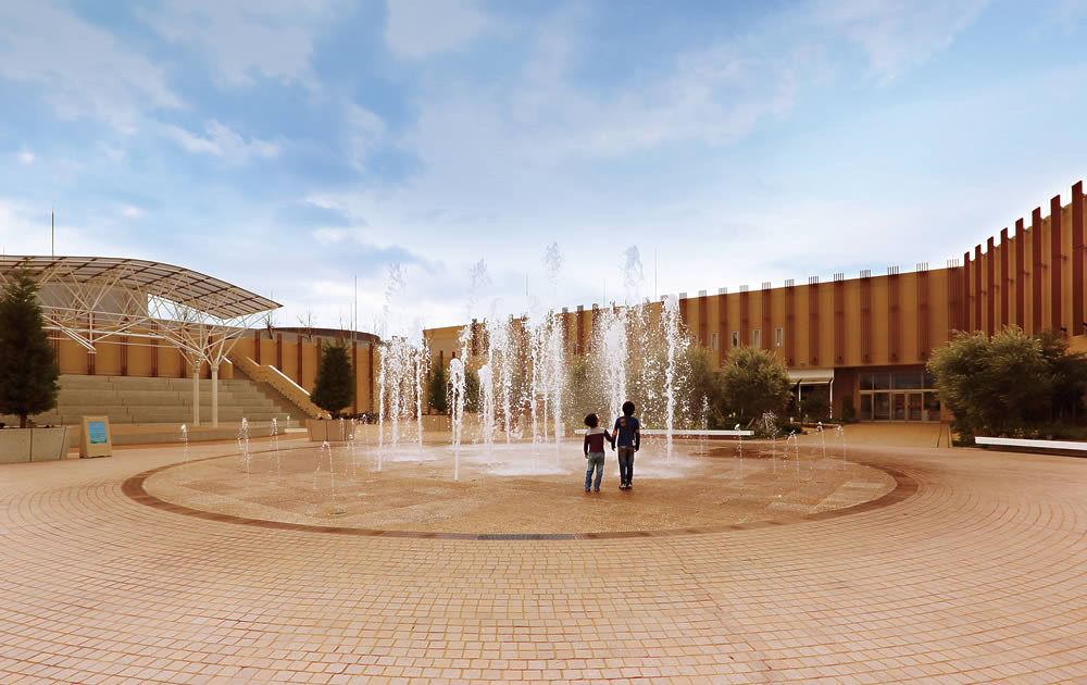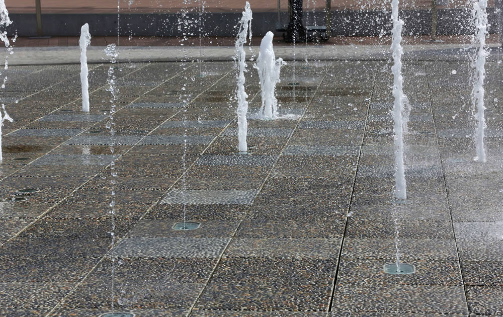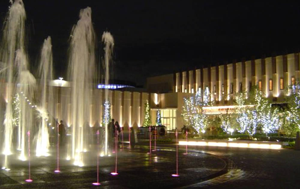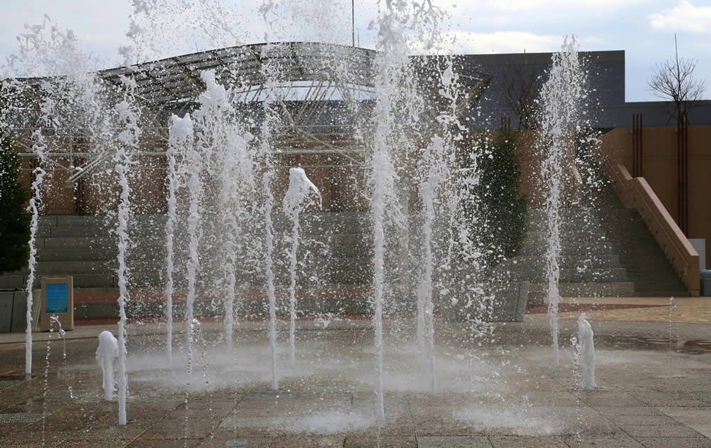 躍動感あふれる水柱が魅惑の空間を創出