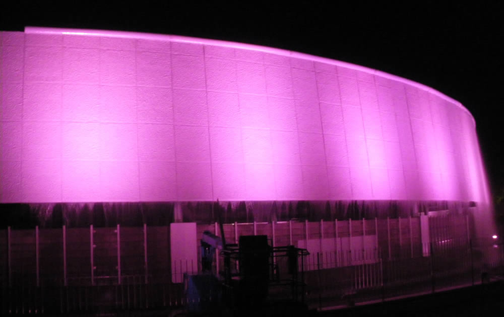 陽光の輝きと夕闇の幻燈、二つの顔を演出 The shining of the sun and the projections in the evening bring two different effects
